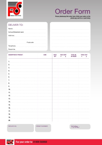 SIGNATURE: ORDER NUMBER: TOTAL: